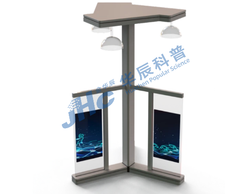 展品由OLED透明电子屏、显示屏支架、工控机、音箱等组成。运用科技OLED透明电子屏幕承载多媒体内容。制作多个IP机器人专家角色形象,生动演绎机器人的小型化和微型化、多样化、智能化、群体化、可重构化、模块化、云端化、仿生化未来发展趋势科普论坛会。