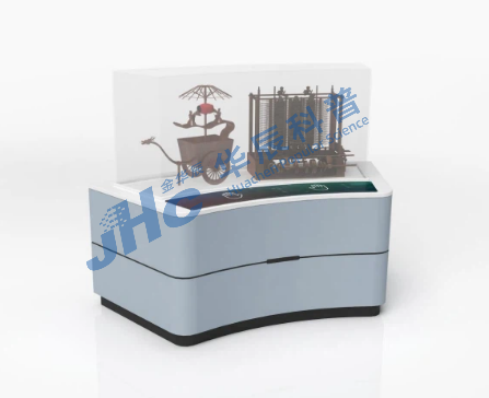 展项在台面展示了一个记里鼓车与差分机模型,观众可以通过触摸感应区域,观看墙面内容,让观众观看记里鼓车与差分机的外形和历史,了解记里鼓车与差分机的用途和意义。