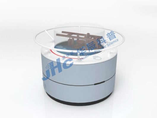 观众来到达芬奇里程计模型的正前方,将手放在感应区,触发感应装置。