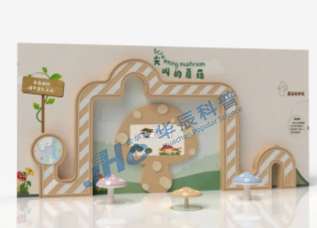 展品通过可爱的蘑菇造型,配上独特的配音技术及视频介绍,展现出关于蘑菇的科学知识。当观众在不同的蘑菇脑袋上坐下时,蘑菇会发出喊声,例如:我有毒,离我远点,你碰到我华丽的帽子了,同时多媒体屏幕播放相关视频。
