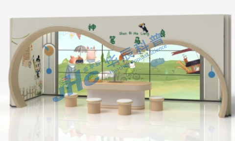 展项由触摸屏和墙面大屏(利用展厅墙面原有屏幕)两部分组成。体验者根据画面场景提示,在触摸屏上选择绘画形象,完成绘画作品,然后将画好的作品发送到墙面大屏上,便会看到自己的绘画作品融入到大屏幕上的场景中动起来。