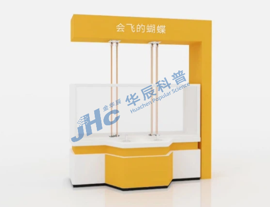 蝴蝶模型上升与下降取决于滚轮机构与绳索之间的摩擦力大小。由于蝴蝶模型旋转运动是由于滚轮上的传动机构带动,因此当转动手轮,会看到蝴蝶模型在空中“翩翩起舞”。