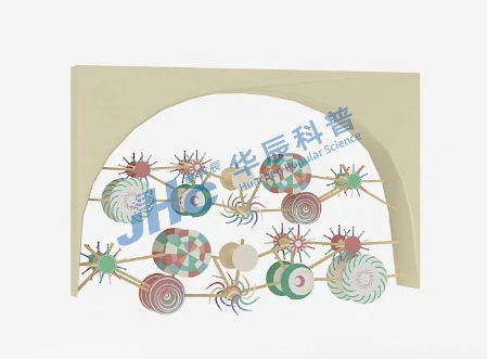 本展品改变传统的风车转轮形态与内容,将转轮设计成为多种莫尔条纹图案,以互动的形式,引导体验者在操作过程中,进一步认识和了解机械传动技术、莫尔条纹现象及其原理等相关知识。